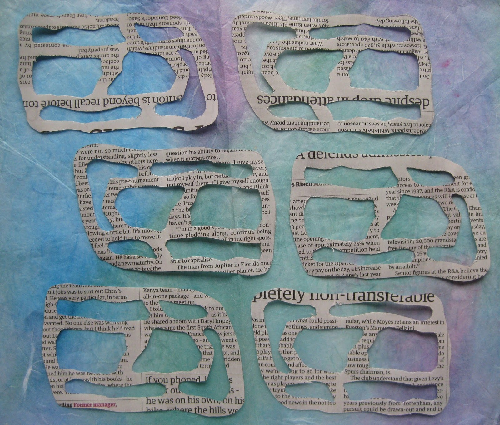 I liked the idea of newspaper for the wall. They worked better close together. The backgrounds look very pale compared with the real colours.